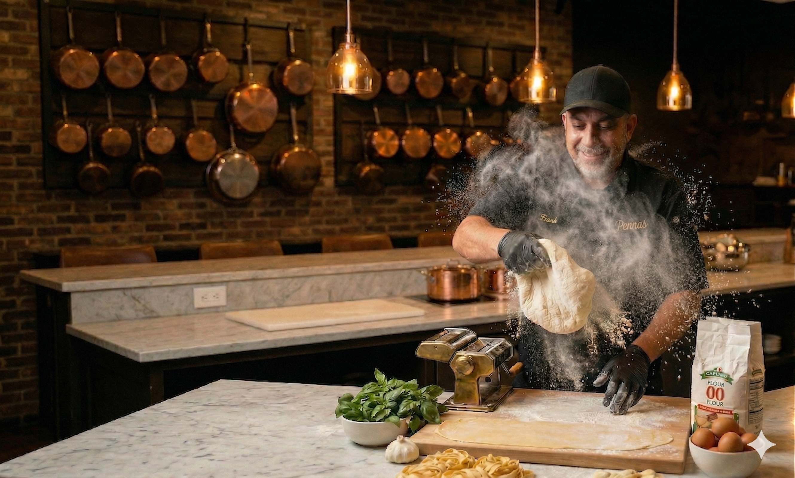 Chef Frank learned at his father's side, mastering the art of handmade pasta. Every strand rolled by hand, every sauce perfected over decades.